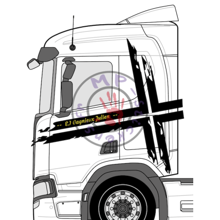 Stickers croix suédoise avec inscription Gagnieux pour SCANIA© - 1 couleur (la paire)