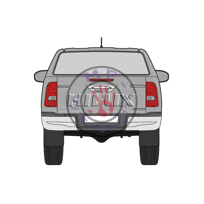 Sticker de malle arrière pour Toyota Hilux en mpression quadri eco solvant sur vinyle polymère de qualité avec lamination (film de protection UV) pour la protéger et conserver plus longtemps votre personnalisation.